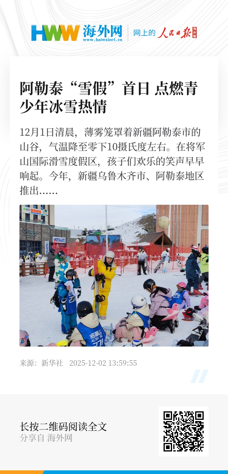 今年,新疆乌鲁木齐市、阿勒泰地区推出中小学生“雪假”,出台免票等优惠政策,旨在充分释放当地冰雪运动的资源优势,让青少年亲近自然、强健体魄。在阿勒泰地区,共有约7.3万名在校中小学生享受此次9天的“雪假”。