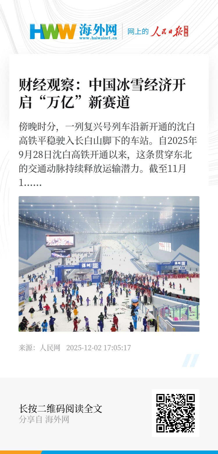 沈白高铁的开通,恰好与中国冰雪经济的快速崛起形成呼应。近年来,我国冰雪“冷资源”加速转化为发展“热动力”,冰雪产业总规模从2015年的2700亿元快速增长至2024年的9800亿元,并预计在2025年突破1万亿元大关。