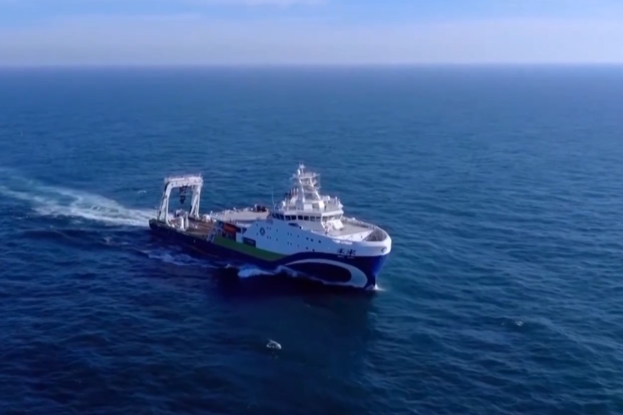 深海技术科学太湖实验室副主任 吴文伟:这艘船采用了全电力推进,包括它的整个节能能效采用了一些综合的技术手段,使这条船的能效比非常高。另外一个特点就是智能化,它可以采取智能化的避碰,无人控制,高效智能化的信息数据融合,目前在国际上都是比较领先的。