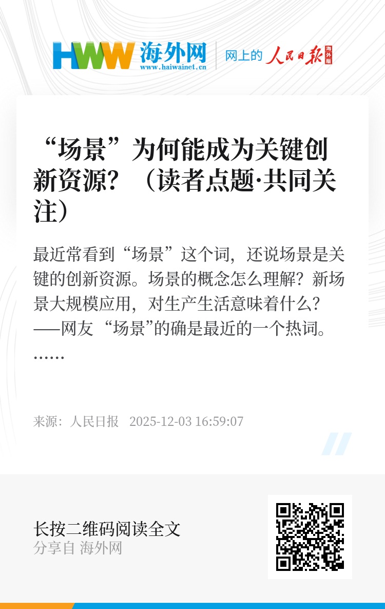 如今,场景已成为关键的创新资源。“十五五”规划建议提出,“加大应用场景建设和开放力度”。