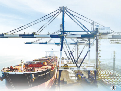图①:中非班轮“韦立”轮停靠在山东港口烟台港码头。