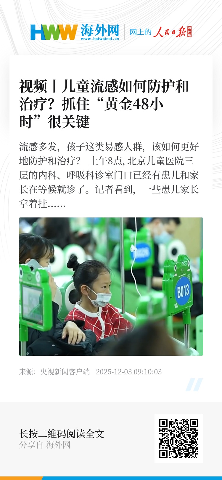 专家介绍,儿童是流感的高风险人群之一,需要高度关注,抓好治疗的“黄金48小时”非常关键。