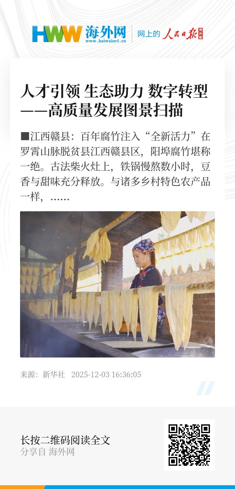 与诸多乡村特色农产品一样,阳埠腐竹曾面临产业标准化不足,人才短缺等困境。“95后”青年陈韦在2019年选择返乡,他不愿让这门传统手艺断代消失。2022年赣县区选聘“乡村CEO”破解发展难题,陈韦成功竞聘,他用年轻人的力量让百年腐竹香飘更远。