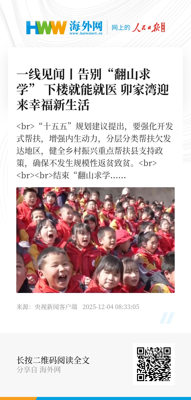 从翻山越岭就学到在家门口享受优质教育资源,这只是“十四五”期间卯家湾巨大变化的一个缩影。如今在卯家湾安置区,从就医看病、就近就业再到民生配套设施都不断完善,群众的生活越来越便利。