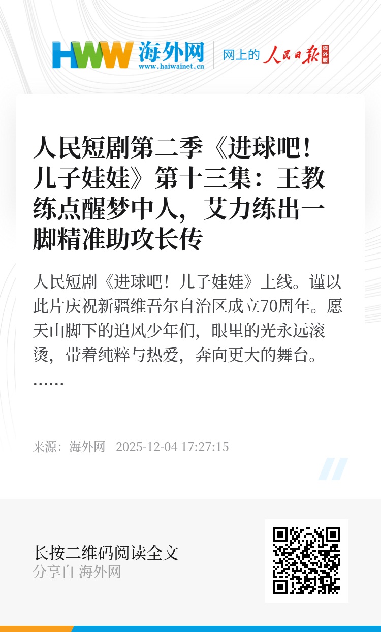 人民短剧《进球吧!儿子娃娃》上线。谨以此片庆祝新疆维吾尔自治区成立70周年。愿天山脚下的追风少年们,眼里的光永远滚烫,带着纯粹与热爱,奔向更大的舞台。