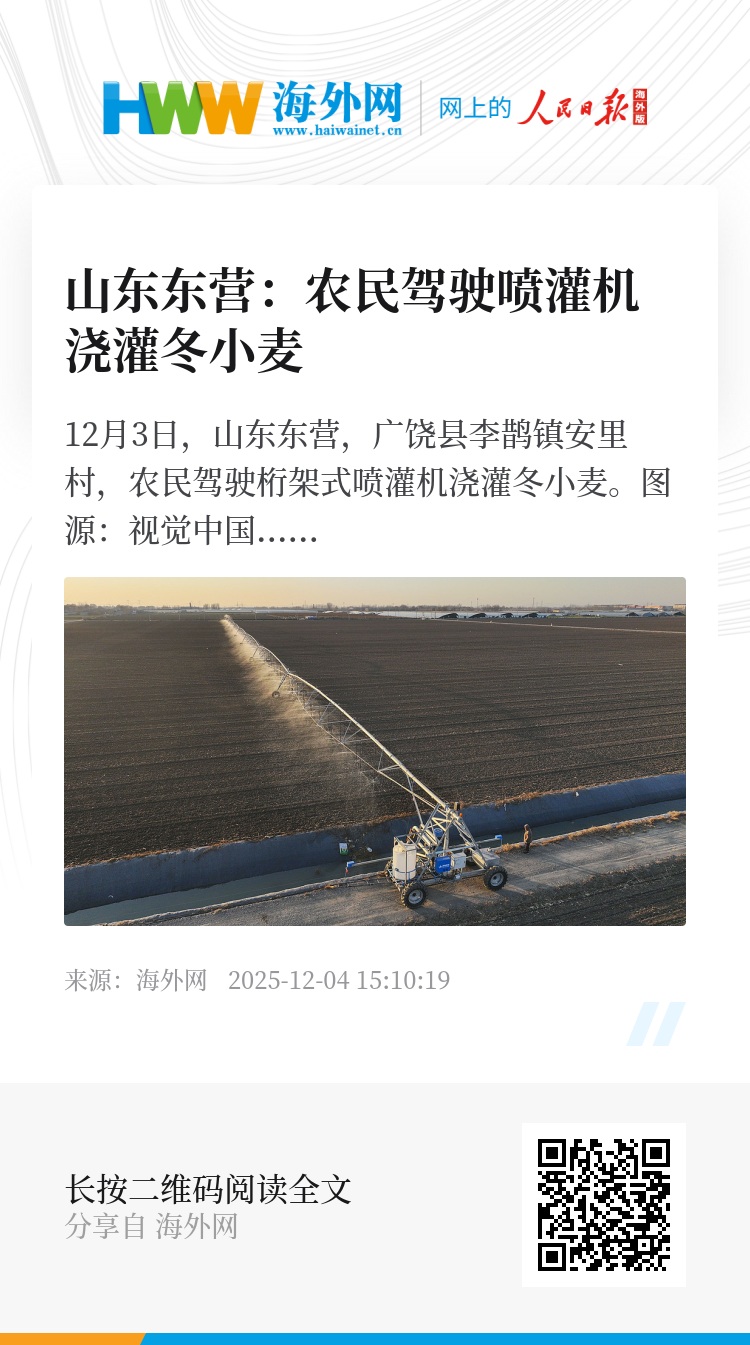 32913537,.山东东营:农民驾驶喷灌机浇灌冬小麦,.2025-12-04 15:10:19,.204309,.陈亚楠、卢思宇