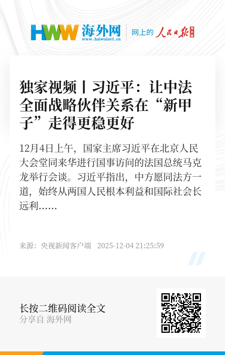12月4日上午,国家主席习近平在北京人民大会堂同来华进行国事访问的法国总统马克龙举行会谈。