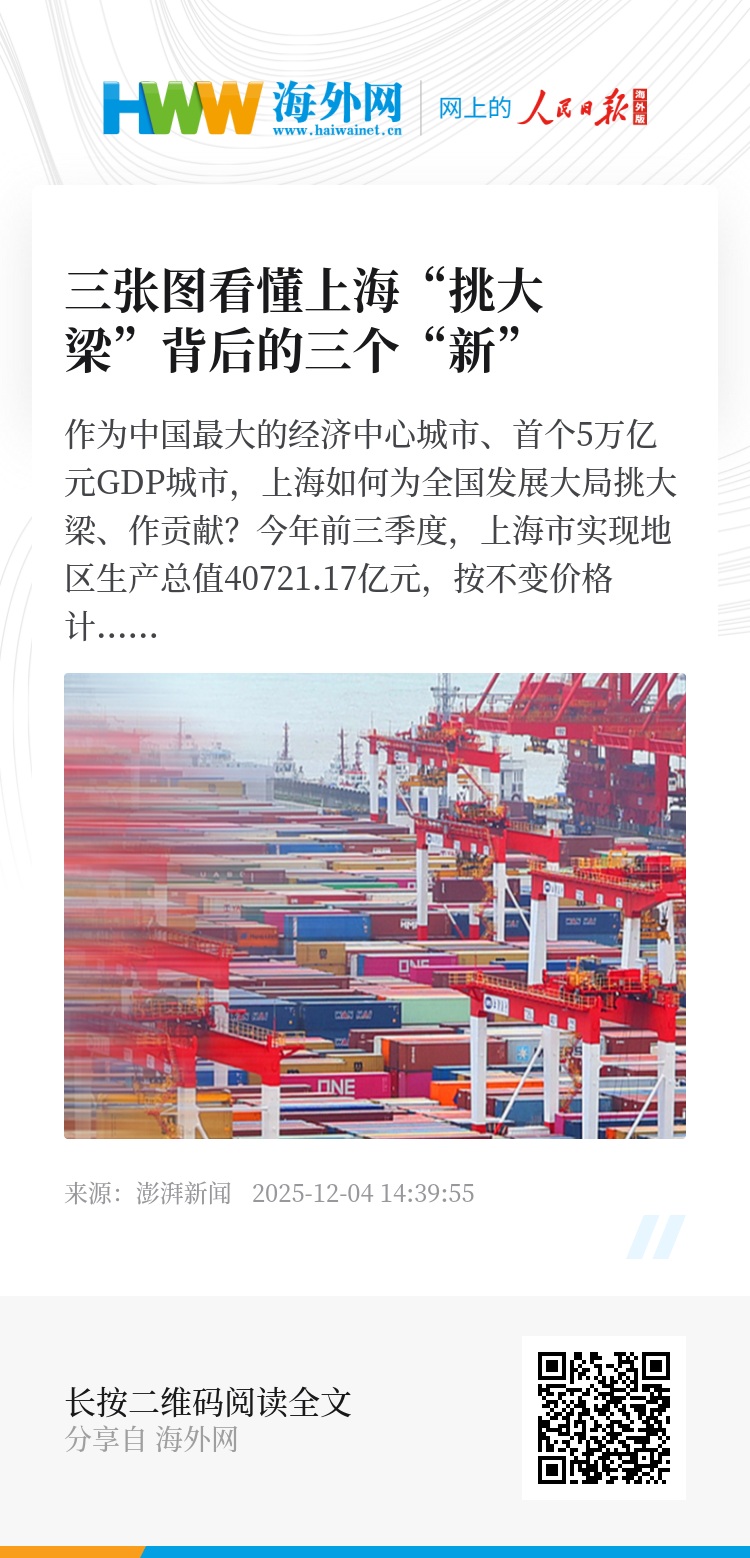 今年前三季度,上海市实现地区生产总值40721.17亿元,按不变价格计算,同比增长5.5%,高于全国水平0.3个百分点,交出了一份沉甸甸的答卷。