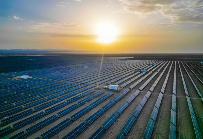 2024年12月19日,在中国石油塔里木油田分公司尉犁10万千瓦光伏发电项目区,一排排整齐的光伏发电板源源不断地收集阳光,转换成清洁的绿色电能,运维人员熟练的地用专业测温设备对太阳能光伏发电设备环境温度进行检查,保障光伏电站安全稳定运行。