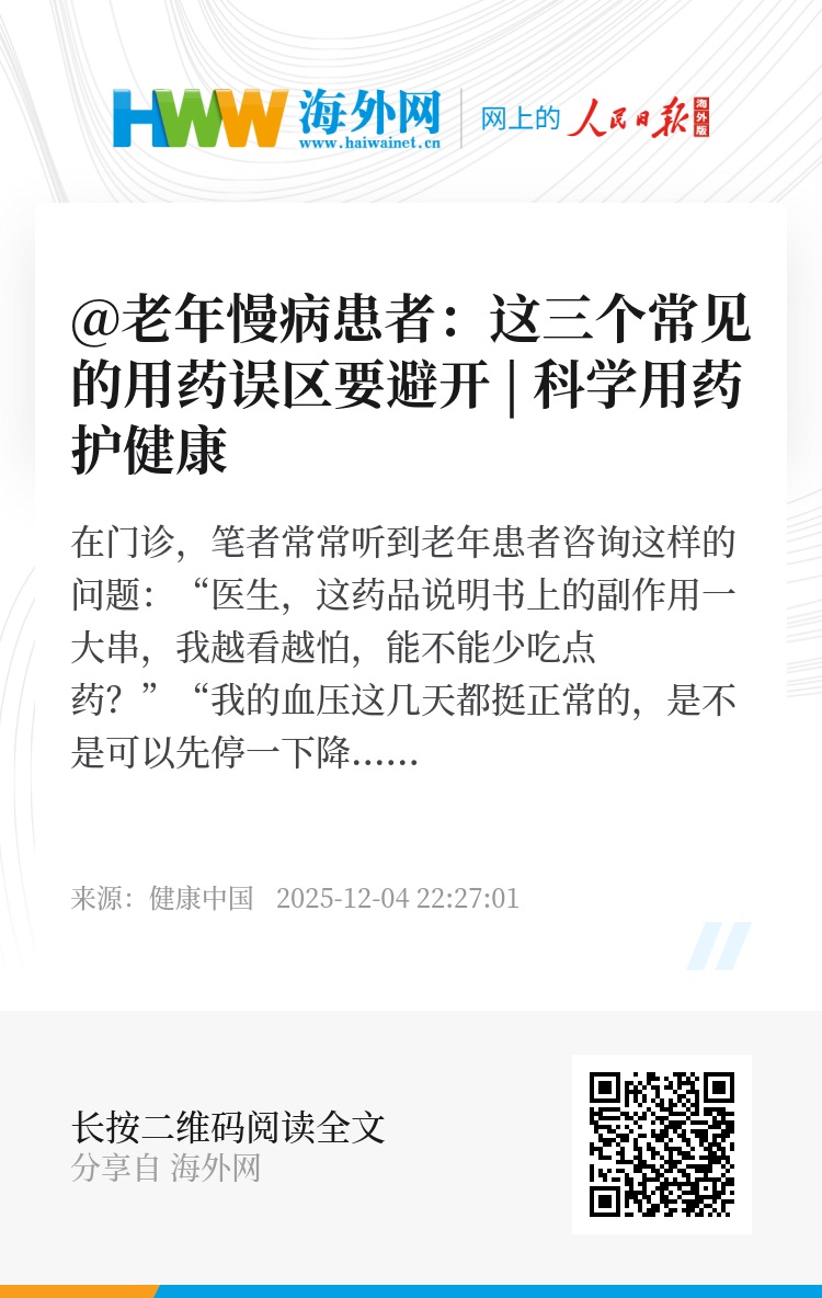 破解“药”结的关键,在于建立科学的认知和积极的行动。愿每一位老年朋友都能成为“明白”的用药者,以健康知识为盾、规范行动为矛,获得长久而优质的晚年生活。