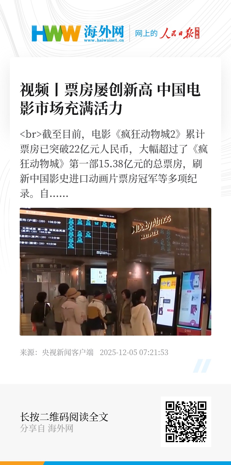 截至目前,电影《疯狂动物城2》累计票房已突破22亿元人民币,大幅超过了《疯狂动物城》第一部15.38亿元的总票房,刷新中国影史进口动画片票房冠军等多项纪录。自同步北美上映以来,这部电影的中国内地累计票房远超北美市场表现,成为该片全球最大的票房市场。今年也被称为“中国动画电影大年”,无论是国产片《哪吒之魔童闹海》领跑上半年,还是进口片《疯狂动物城2》在年末稳稳接棒,动画电影接连成为爆款,正是中国经济长期向好、文化活力不断提升的最好体现。