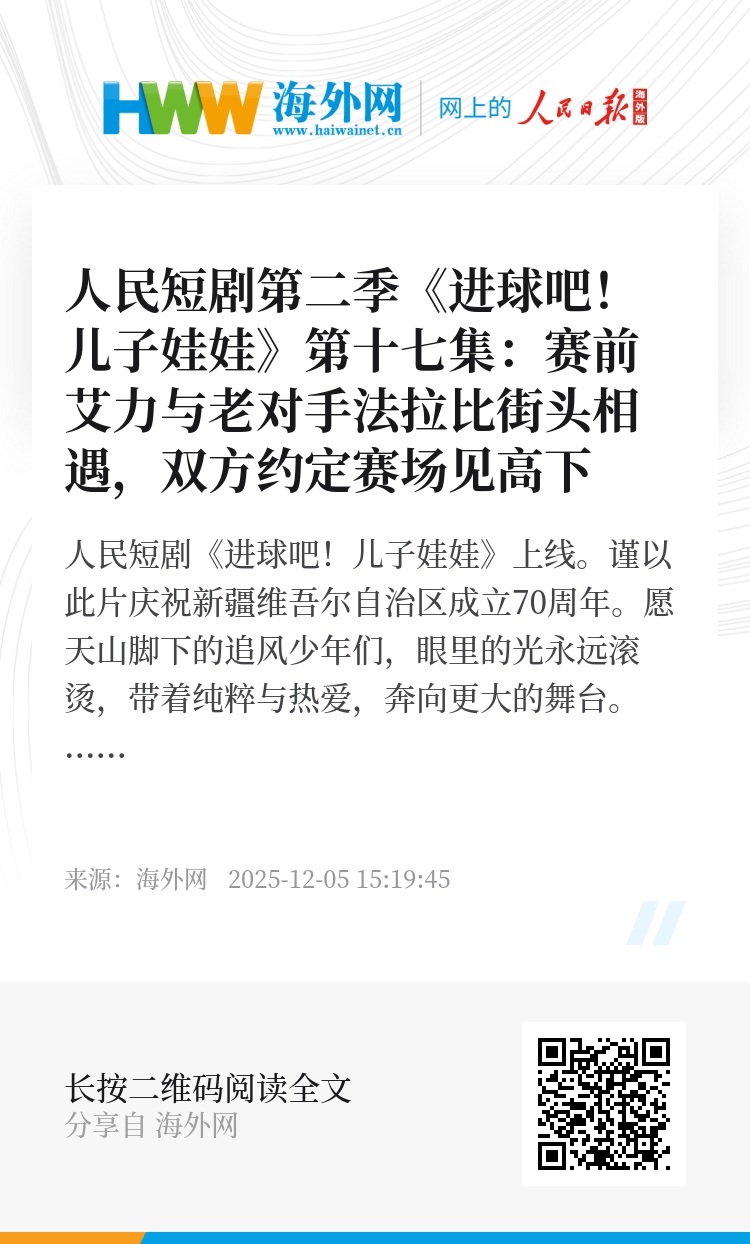 人民短剧《进球吧!儿子娃娃》上线。谨以此片庆祝新疆维吾尔自治区成立70周年。愿天山脚下的追风少年们,眼里的光永远滚烫,带着纯粹与热爱,奔向更大的舞台。