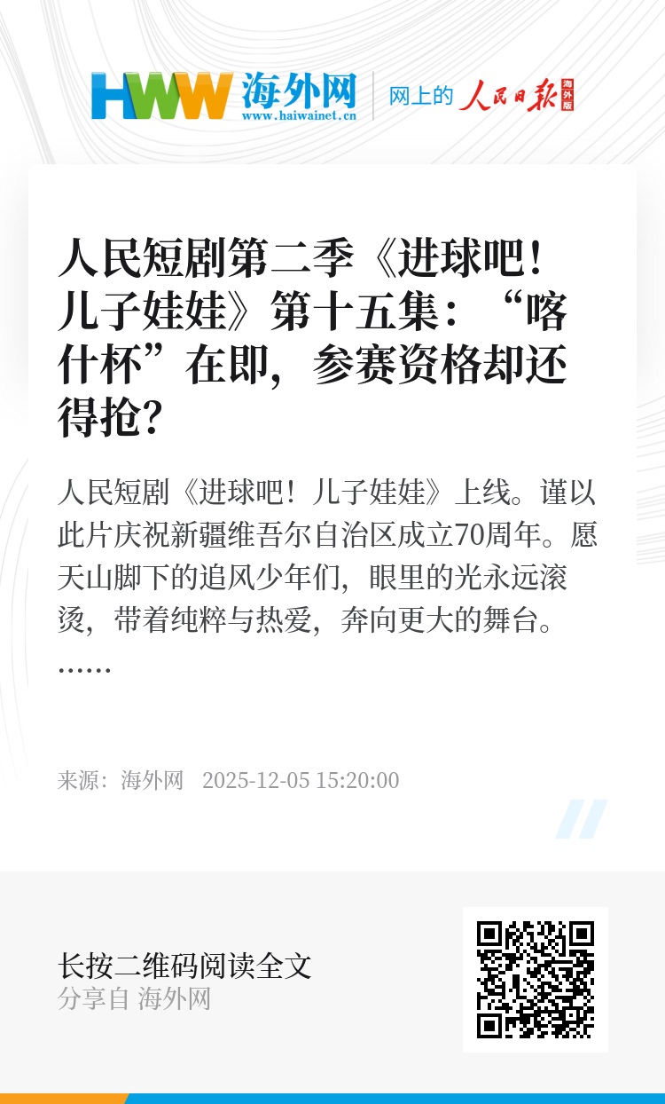 人民短剧《进球吧!儿子娃娃》上线。谨以此片庆祝新疆维吾尔自治区成立70周年。愿天山脚下的追风少年们,眼里的光永远滚烫,带着纯粹与热爱,奔向更大的舞台。