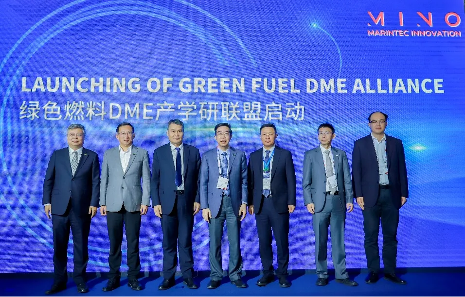 在绿色燃料DME产学研联盟启动仪式上,付国清代表集团与黄震院士等嘉宾共同启动联盟。该联盟由上海交通大学联合中远海运集团、中国船舶集团、中国船级社、中国农发集团、中石化上海石油化工研究院、上港集团能源公司等单位共同发起,旨在协同推进绿色二甲醚燃料全产业链技术攻关与标准制定,打造船海新能源及动力装备的“中国方案”,支撑我国造船强国、海洋强国建设。中国农发集团将着力服务国家“双碳”战略,布局绿色能源产业,推动绿色二甲醚燃料在船海动力装备领域的技术创新与产业应用,为构建船海新能源及动力装备原创技术体系贡献力量。
