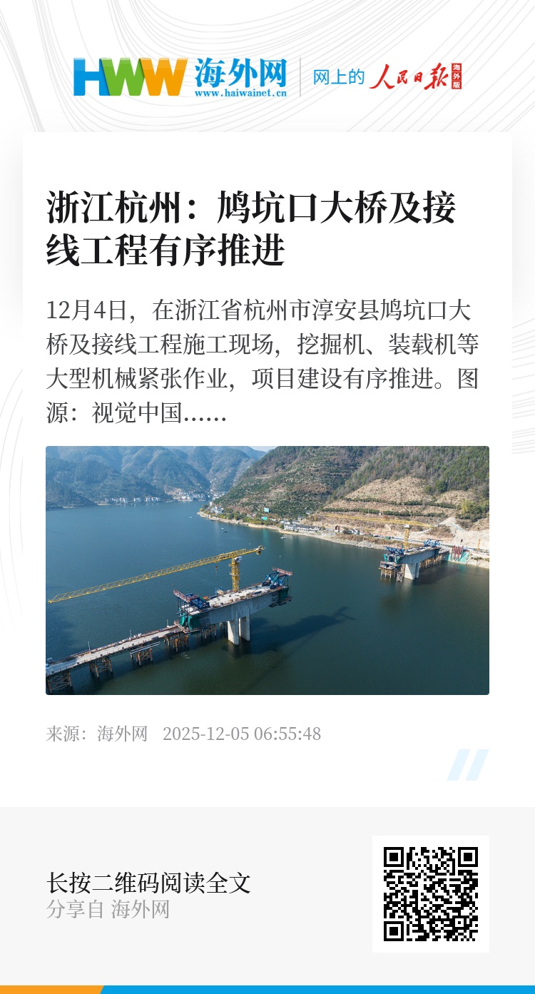 32913679,.浙江杭州:鸠坑口大桥及接线工程有序推进,.2025-12-05 06:55:48,.204441,.张荣耀、卢思宇