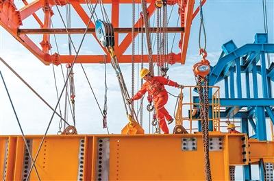 工人在进行缆载吊机拼装作业。季宇鑫摄