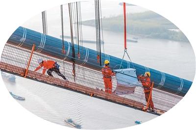“就像在繁忙的马路上搭积木,既要保证积木搭得稳,又不能影响车辆通行。”李向阳介绍,项目团队在与海事局、航道管理部门精心策划后,创新采用分阶段限航吊装工法:在每天航道流量监测的基础上,首先对一侧航道实施警戒限航,完成跨中至主塔方向第一节钢箱梁吊装;当钢箱梁达到一定高度后,再对另一侧航道进行警戒限航,完成第二节钢箱梁吊装。该方式对现场组织和工序衔接要求极高,每一步都需要与海事部门密切配合,精准调度,才能确保施工航运“两不误”。