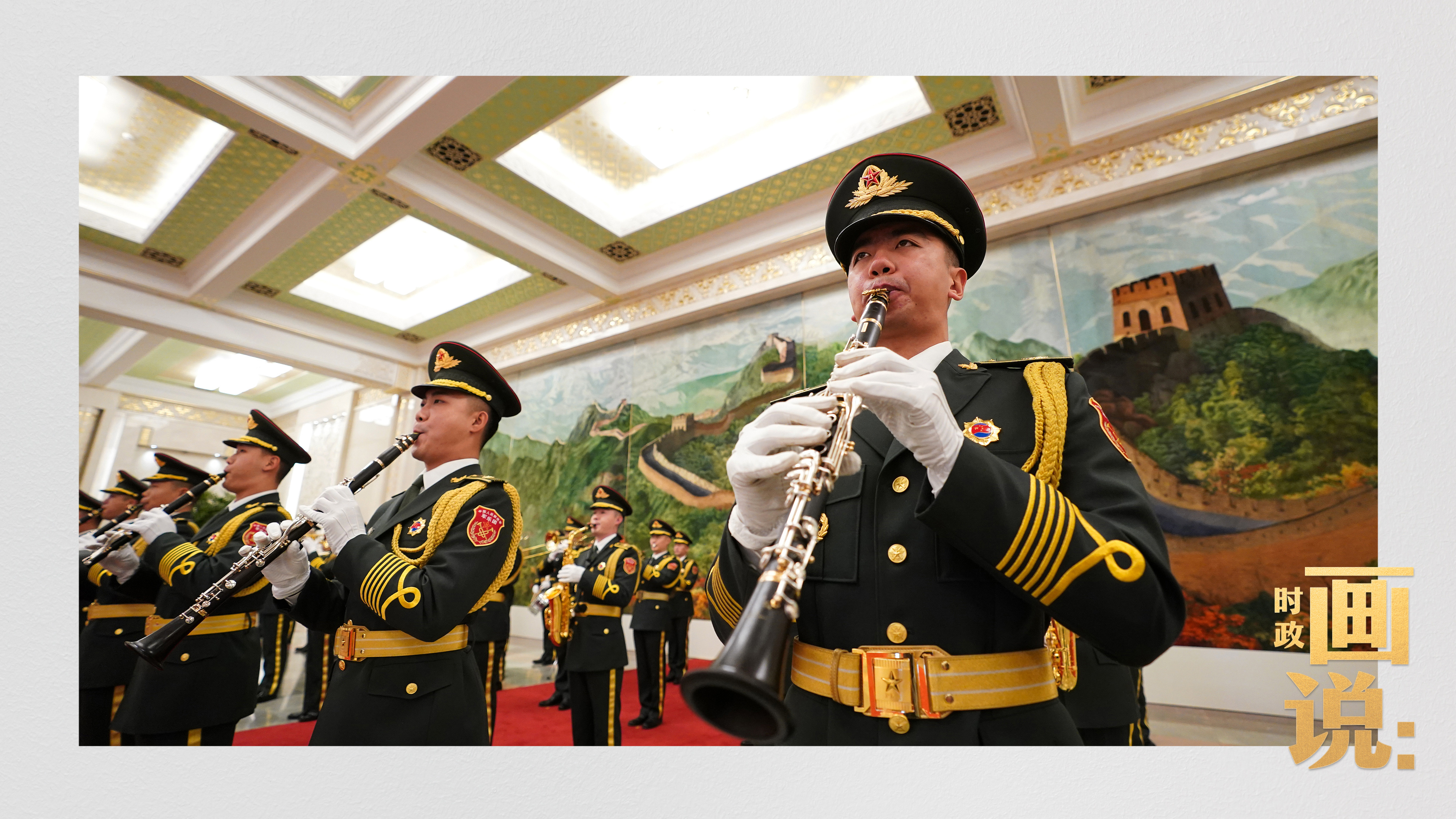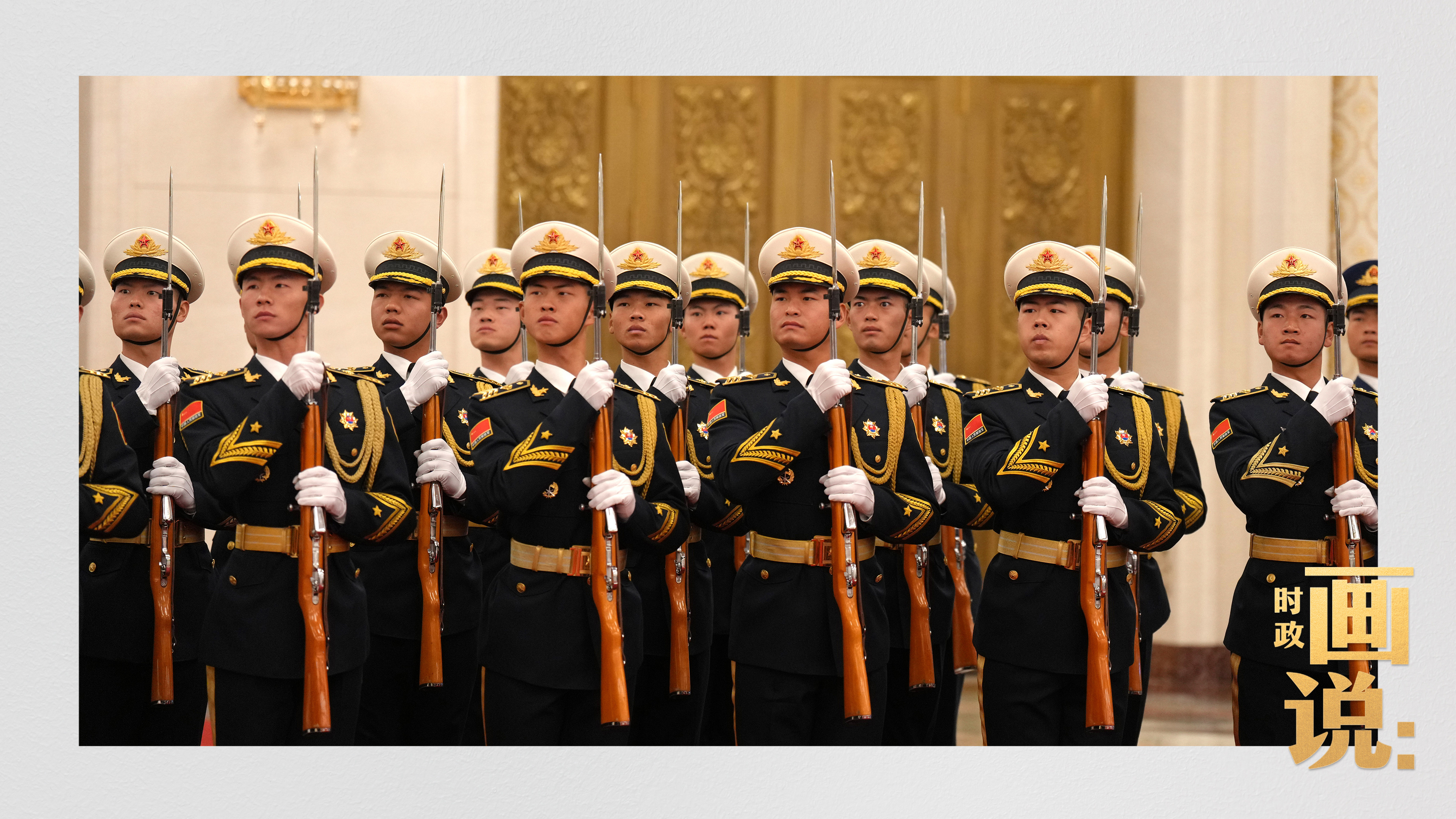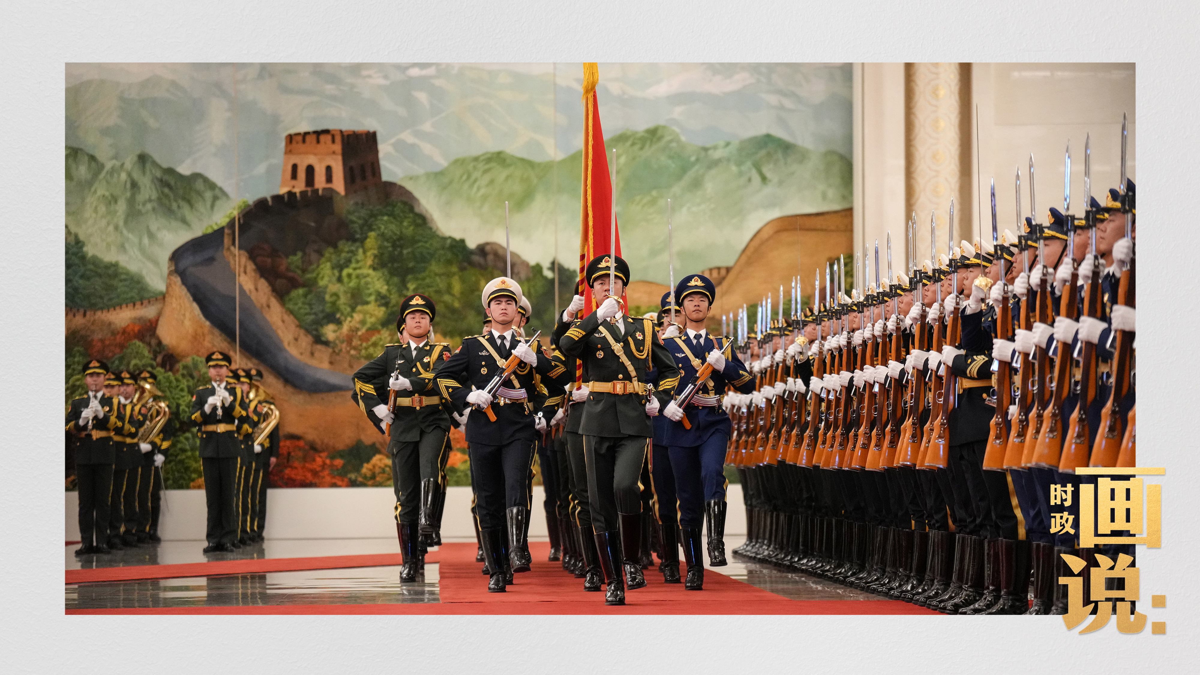 △马克龙在习近平陪同下检阅中国人民解放军仪仗队并观看分列式