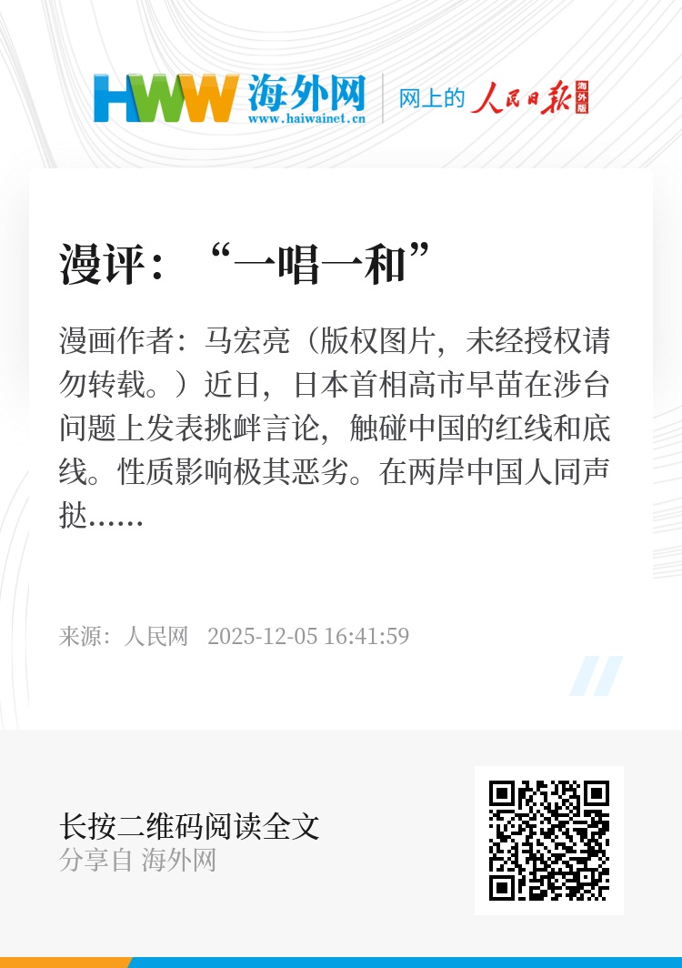 在两岸中国人同声挞伐日方露骨挑衅之时,赖清德和民进党当局竟恬不知耻附和高市早苗言论、为其辩护。赖清德还晒出吃日本料理的照片,高喊“挺日”。双方“一唱一和”,暴露其丑恶嘴脸。(陈籽)