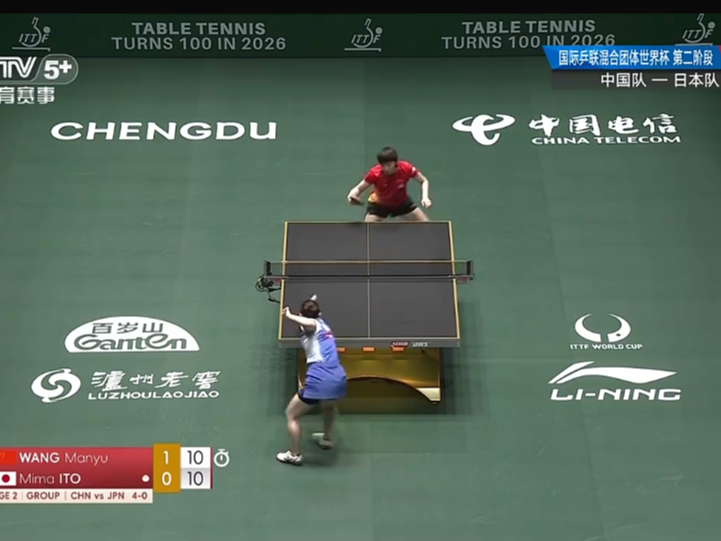 第二场女单比赛,王曼昱2-1战胜伊藤美诚,三局比分为:12-10、10-12、11-2。中国队大比分5-1领先。