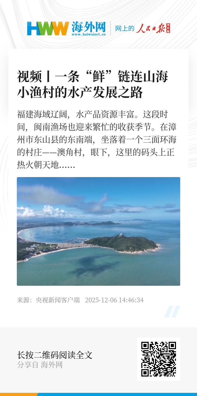福建海域辽阔,水产品资源丰富。这段时间,闽南渔场也迎来繁忙的收获季节。在漳州市东山县的东南端,坐落着一个三面环海的村庄——澳角村,眼下,这里的码头上正热火朝天地忙活着。