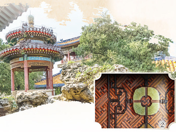 图①为宁寿宫花园内的碧螺亭,是国内仅见全部采用梅花主题为装饰元素的古代建筑。图②为宁寿宫花园内经过修复的竹丝镶嵌落地罩(局部)。