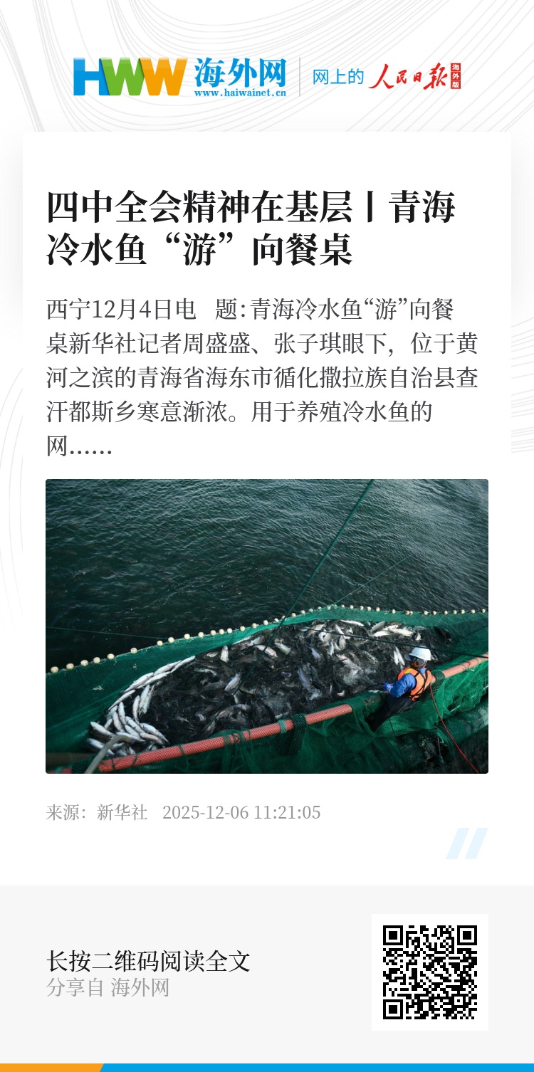 新华社西宁12月4日电 题:青海冷水鱼“游”向餐桌