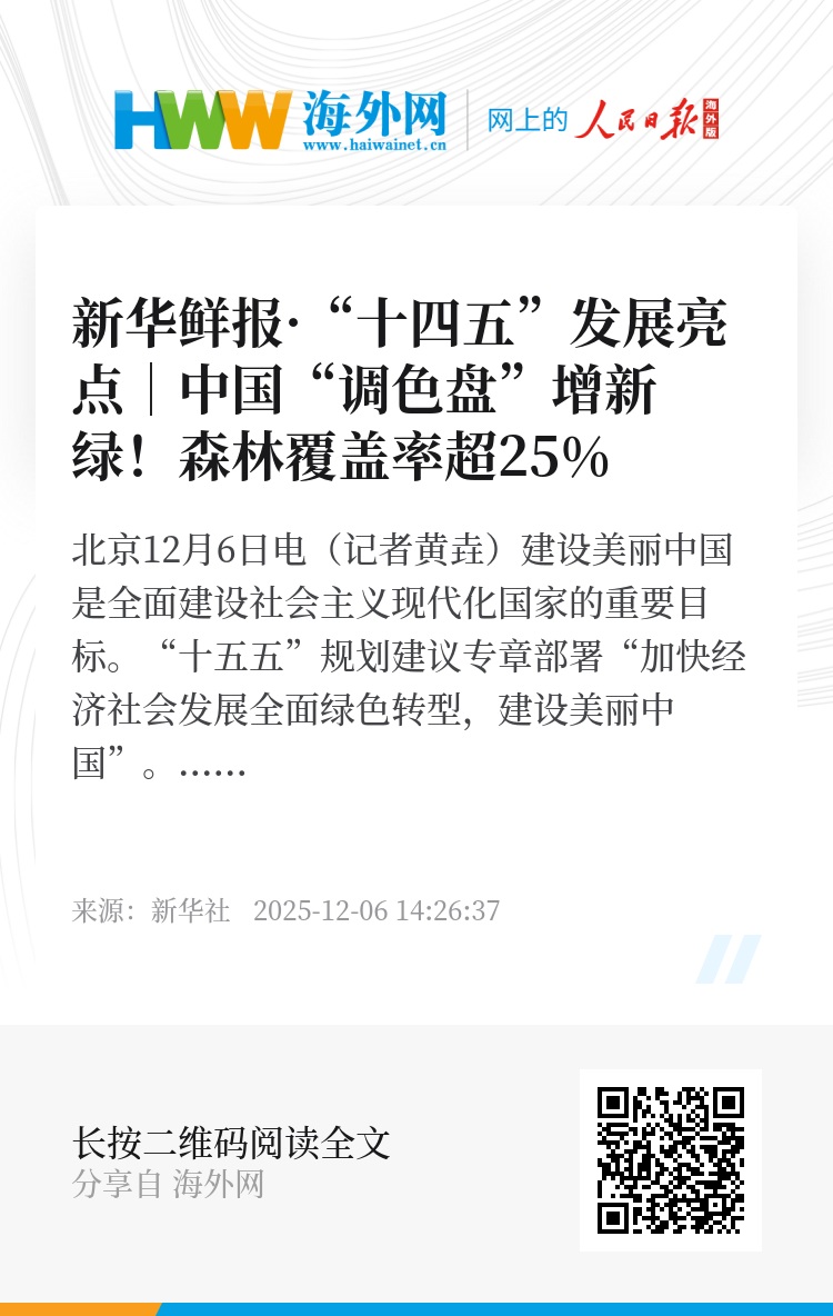 新华社北京12月6日电(记者黄垚)建设美丽中国是全面建设社会主义现代化国家的重要目标。“十五五”规划建议专章部署“加快经济社会发展全面绿色转型,建设美丽中国”。