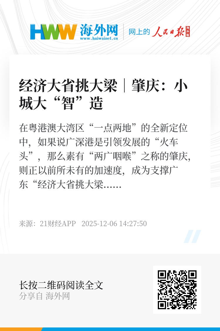 智造强产业,乡兴惠民生,生态增底气。如今,肇庆这座千年古城正以“稳中有进、质效双升”的发展态势,在高质量发展的道路上笃定前行。未来,随着科教创新走廊建设的纵深推进、“百千万工程”的持续深化,肇庆将在大湾区版图中愈发重要,为经济大省挑大梁贡献更持久的西翼力量。(南方财经记者喻淑琴 通讯员陈家华 黄舒镱)