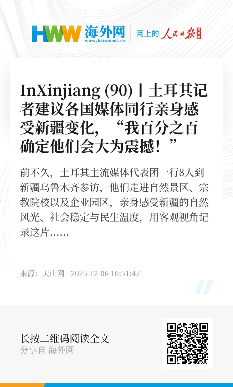 前不久,土耳其主流媒体代表团一行8人到新疆乌鲁木齐参访,他们走进自然景区、宗教院校以及企业园区,亲身感受新疆的自然风光、社会稳定与民生温度,用客观视角记录这片土地的发展活力。