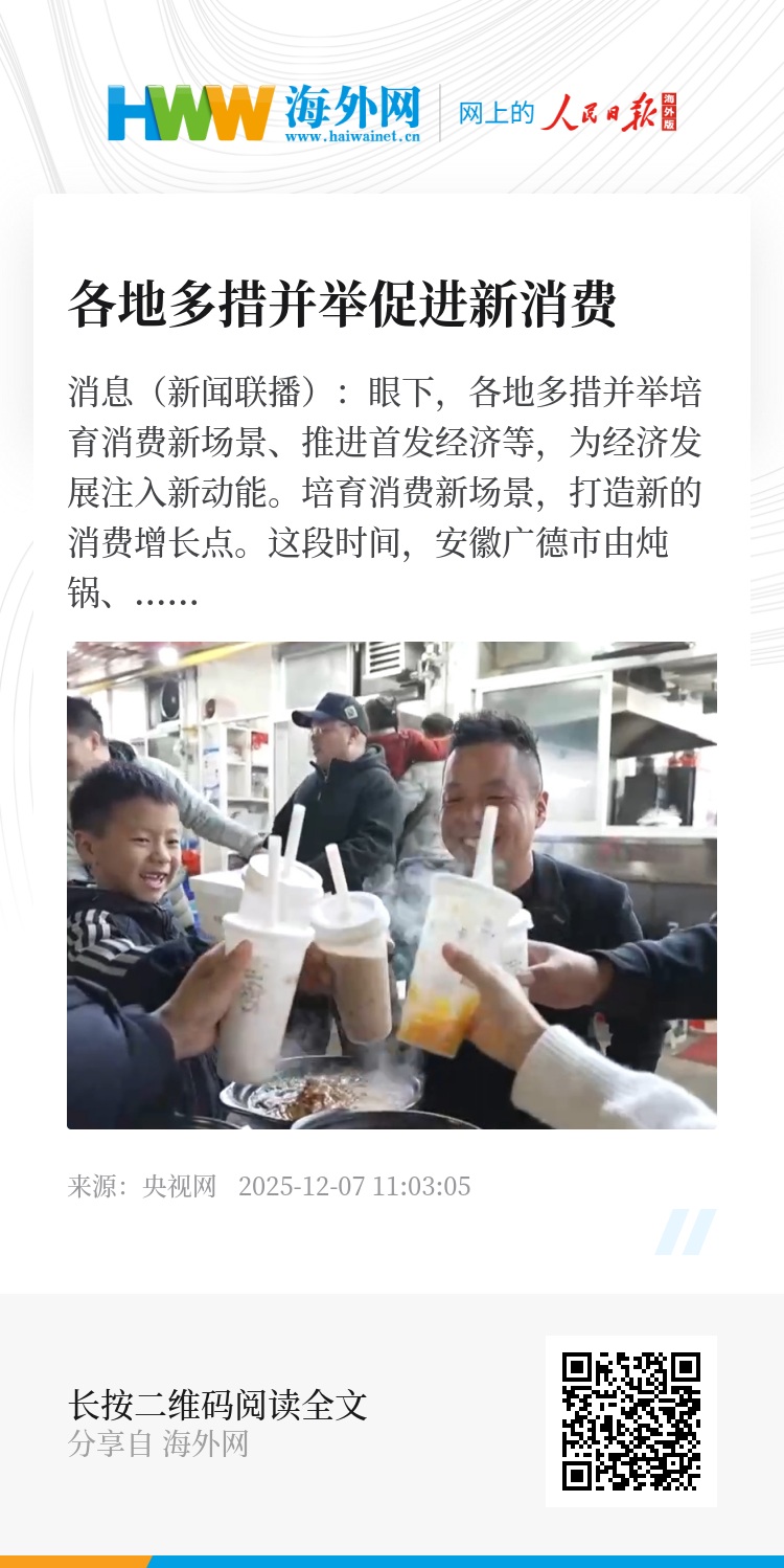 央视网消息(新闻联播):眼下,各地多措并举培育消费新场景、推进首发经济等,为经济发展注入新动能。
