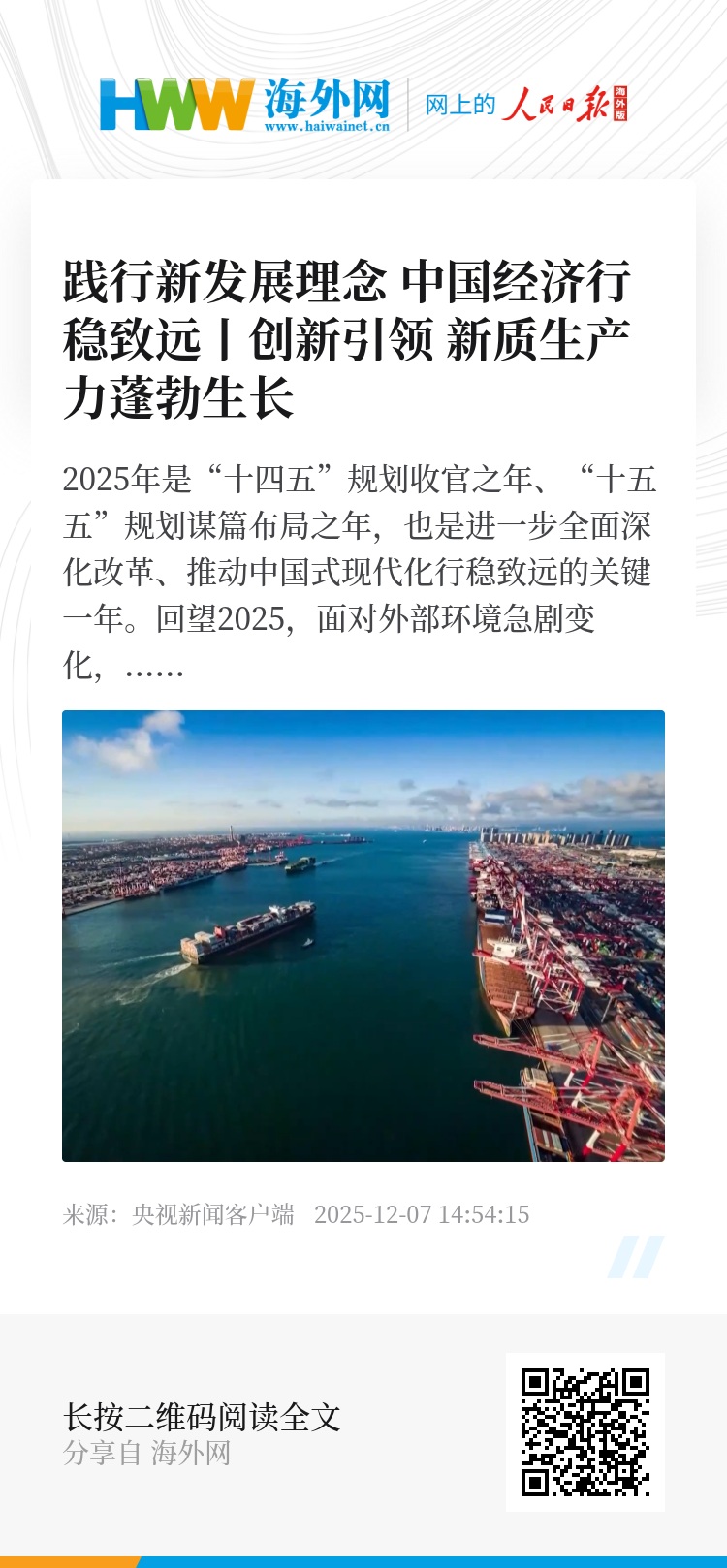2025年是“十四五”规划收官之年、“十五五”规划谋篇布局之年,也是进一步全面深化改革、推动中国式现代化行稳致远的关键一年。回望2025,面对外部环境急剧变化,不确定性增加,在以习近平同志为核心的党中央坚强领导下,各地各部门完整准确全面贯彻新发展理念,中国经济沿着高质量发展道路笃定前行,实现质的有效提升和量的合理增长,在持续向好中展现出强大韧性和活力。