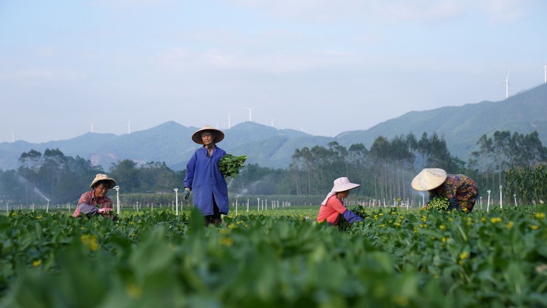 11月9日,梧州市龙圩区广平镇调村生态蔬菜种植基地,村民忙于采摘新鲜蔬菜供应粤港澳大湾区市场。近年来,该市着力打造“一村一品”“一乡一业”特色产业,助农增收。颜金昌 摄
