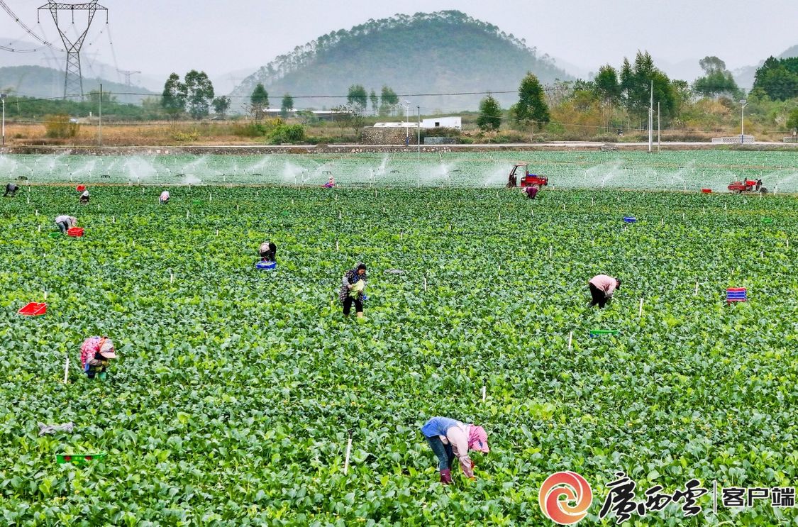 11月30日,在位于钟山县的贺州农投供港蔬菜基地,数十名工人正忙着采摘菜心。该基地新鲜蔬菜以“当天采、次日达”的速度,通过供港冷链直通车直送粤港澳大湾区,保障“菜篮子”供应。黎豪图 摄