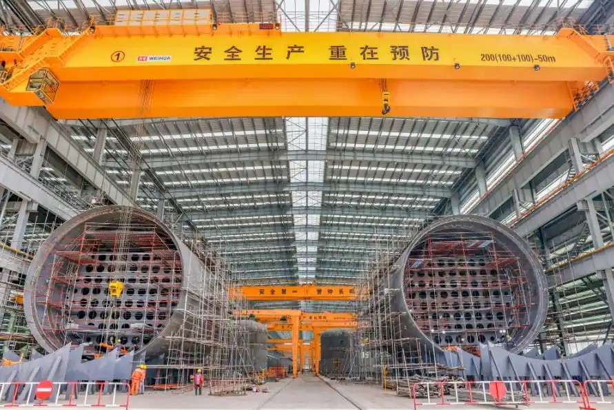 “襟江近海”的地理坐标,更让泰州成为长江经济带与长三角的关键节点。这里河道纵横、水网密布,水运业十分发达。这种“江海河联运”优势,不仅降低了原材料的运输成本,更便于成品船扬帆出海,为船舶出海打通了“最后一公里”。正是大江、大河、大港、大产业的优势,塑造了泰州造船业的独特基因。