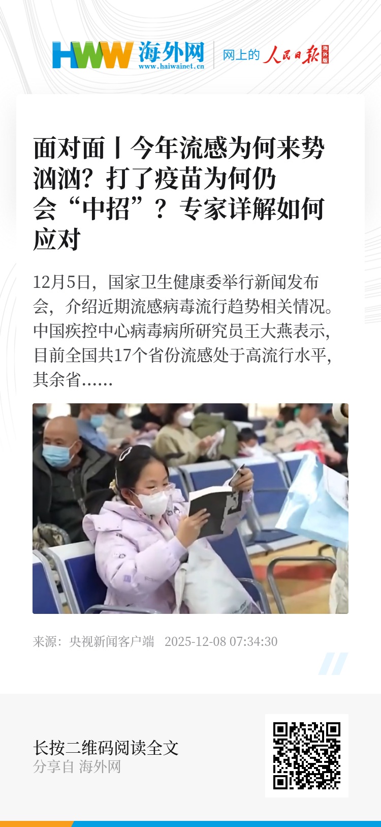 记者:但是也有人说,之前已经打了流感疫苗了,但是最后还是感染了,打疫苗对很多人来讲,现在觉得似乎不是一个保障。