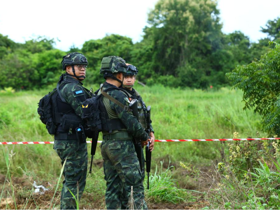 10月10日,在泰国沙缴府,泰军士兵在泰柬边境警戒。新华社记者孙玮彤摄