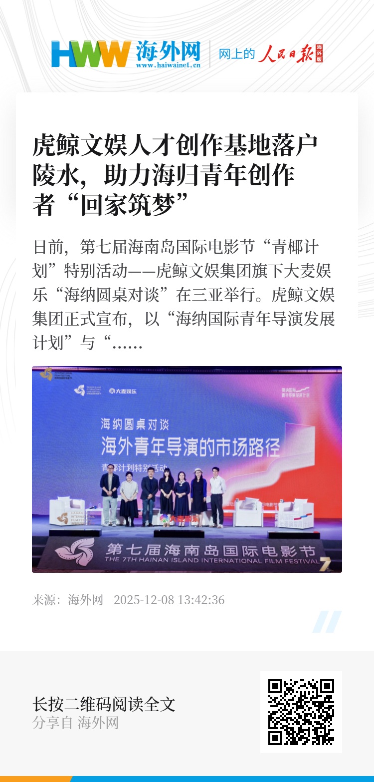 日前,第七届海南岛国际电影节“青椰计划”特别活动——虎鲸文娱集团旗下大麦娱乐“海纳圆桌对谈”在三亚举行。虎鲸文娱集团正式宣布,以“海纳国际青年导演发展计划”与“春苗编剧计划”两大人才项目为核心的创作基地正式落户海南陵水海归小镇,向全球华语青年电影人发出“回家筑梦”的诚挚邀约,系统化支持华语创作者回国发展。