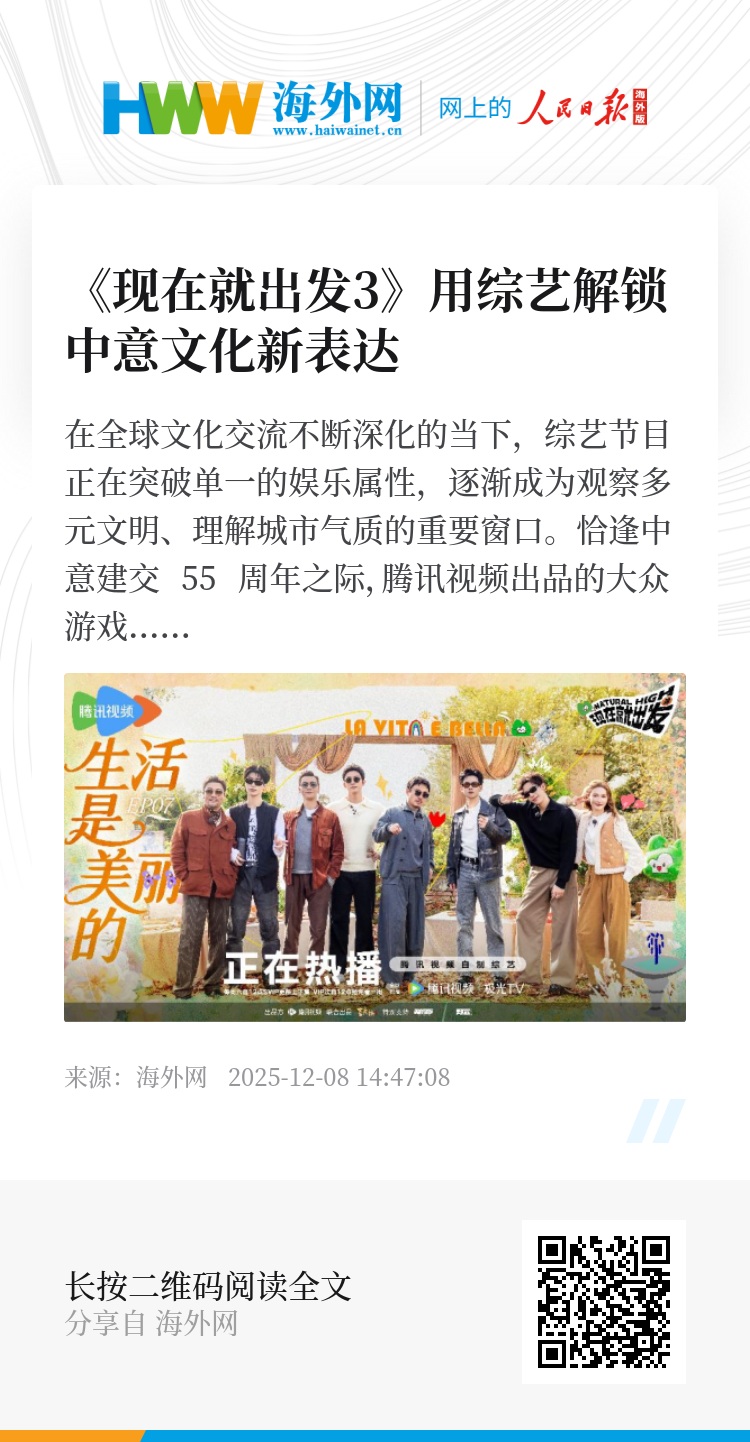在当下的全球传播语境中,如何以更年轻、更友好的方式让不同文明彼此靠近,是内容行业的共同课题。《现在就出发3》的探索提供了一个值得关注的样本,用综艺的表达方式降低理解门槛,也用嘉宾的自然互动促进情感共鸣。当一档综艺能让观众在收获快乐之外感知另一种文化气息,节目本身也构建了一扇轻巧而有效的文化窗口。