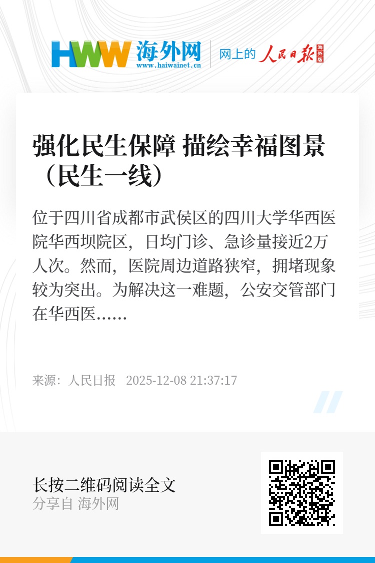 位于四川省成都市武侯区的四川大学华西医院华西坝院区,日均门诊、急诊量接近2万人次。然而,医院周边道路狭窄,拥堵现象较为突出。为解决这一难题,公安交管部门在华西医院片区实行“分区抵离,分点上下”的通行方案,通过设置限时单行道、划分南北分区等,优化车辆到达、停放和上下客流程。这一区域的交通拥堵时长从40分钟减至10分钟,拥堵情况得以缓解,患者就医更加方便。