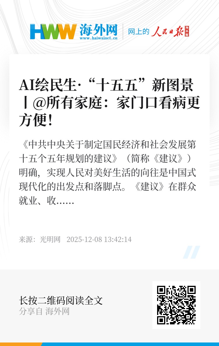 《中共中央关于制定国民经济和社会发展第十五个五年规划的建议》(简称《建议》)明确,实现人民对美好生活的向往是中国式现代化的出发点和落脚点。《建议》在群众就业、收入、教育、社保等民生领域提出一系列举措。从年轻人求职到老年人养老,从孩子教育到家庭医疗,这些民生红利让发展成果可以更多更公平地惠及民众。