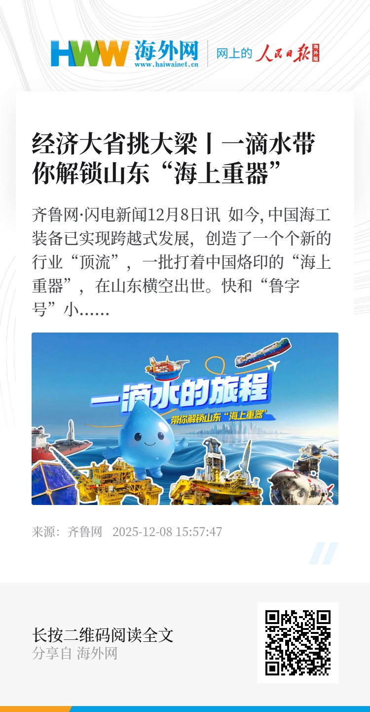 齐鲁网·闪电新闻12月8日讯 如今,中国海工装备已实现跨越式发展,创造了一个个新的行业“顶流”,一批打着中国烙印的“海上重器”,在山东横空出世。快和“鲁字号”小水滴一起,看看那些神奇的“大家伙”吧>>
