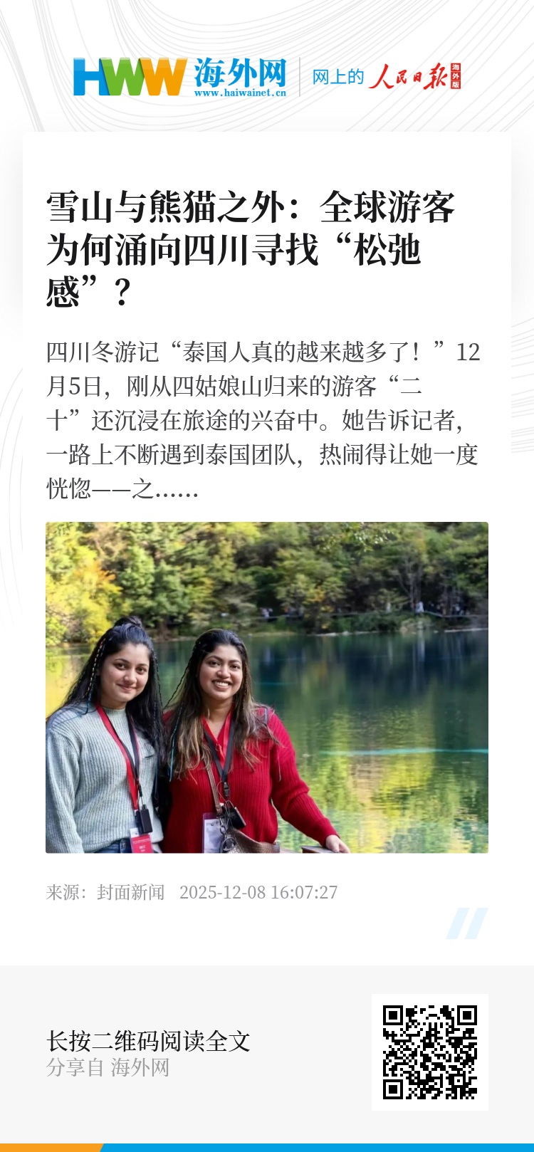 这个冬季,四川不仅仅是东南亚游客眼中的“冰雪胜地”,更成为全球游客体验中国式松弛感与文化深度的首选目的地。一场场跨越山海的“双向奔赴”,正在巴蜀大地不断上演。