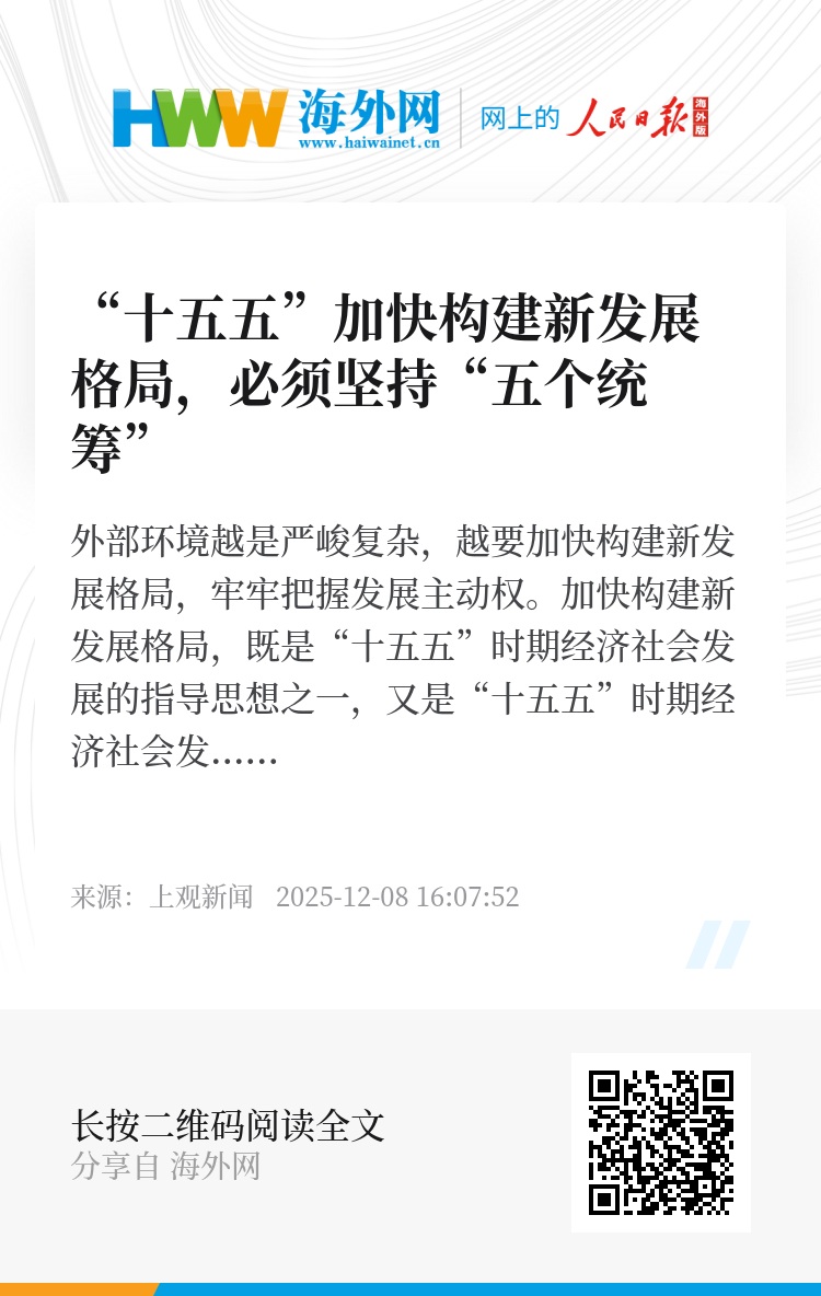 习近平总书记反复强调,构建新发展格局是一个系统工程,既要“操其要于上”,加强战略谋划和顶层设计,也要“分其详于下”,把握工作着力点,并系统提出了“五个统筹”的要求,对于“十五五”时期加快构建新发展格局具有重要指导意义。