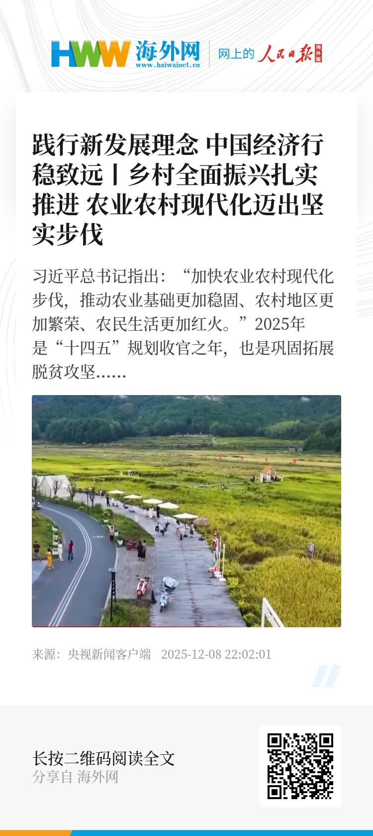 习近平总书记指出:“加快农业农村现代化步伐,推动农业基础更加稳固、农村地区更加繁荣、农民生活更加红火。”