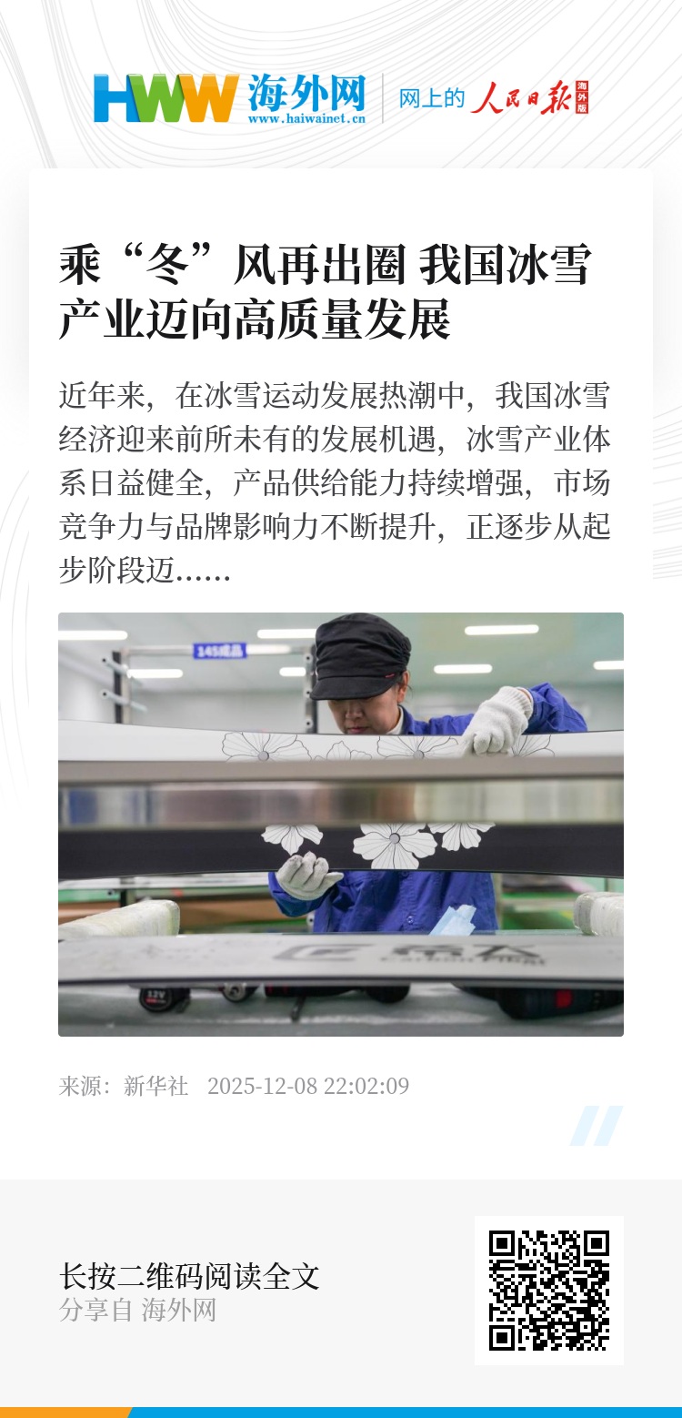 近年来,在冰雪运动发展热潮中,我国冰雪经济迎来前所未有的发展机遇,冰雪产业体系日益健全,产品供给能力持续增强,市场竞争力与品牌影响力不断提升,正逐步从起步阶段迈向高质量发展阶段。