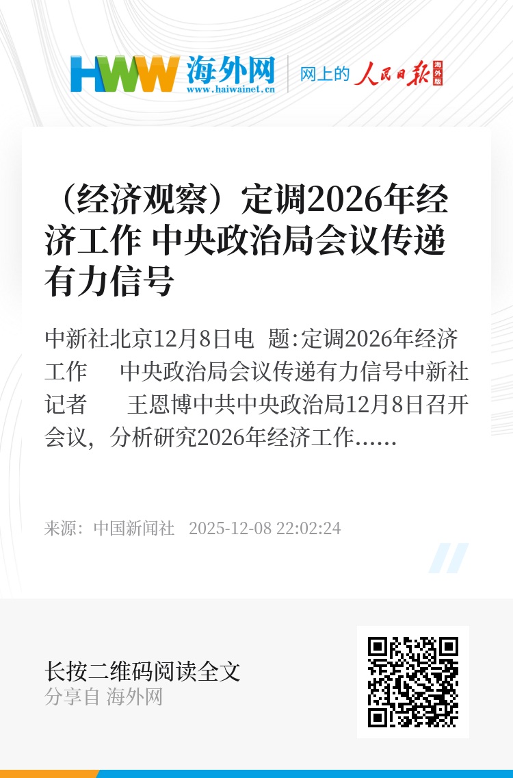 中共中央政治局12月8日召开会议,分析研究2026年经济工作,传递出实现“十五五”良好开局的有力信号。