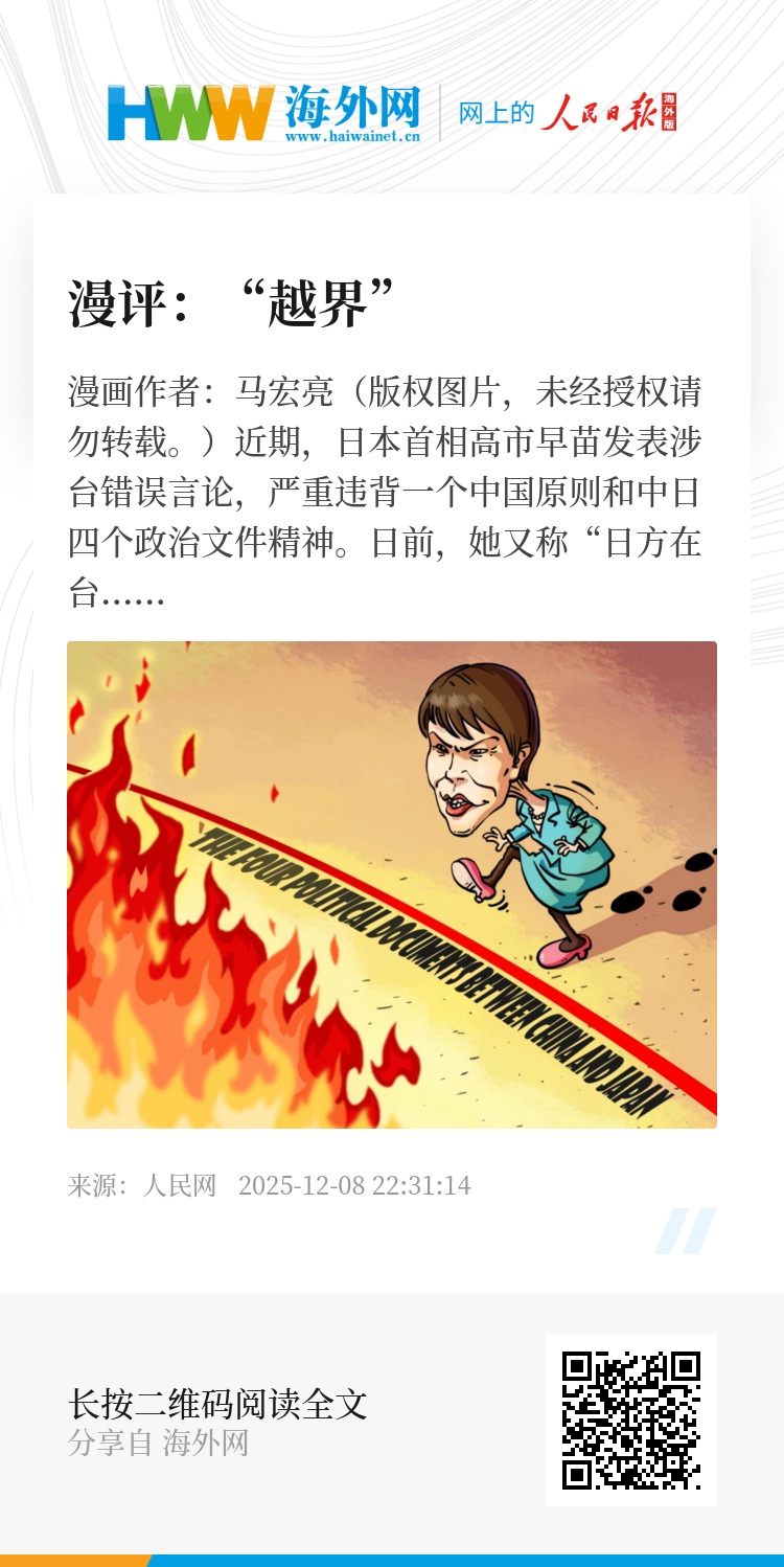 近期,日本首相高市早苗发表涉台错误言论,严重违背一个中国原则和中日四个政治文件精神。日前,她又称“日方在台湾问题上的基本立场如1972年《中日联合声明》所述,这一立场没有变化”。