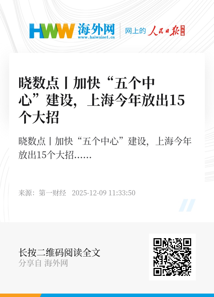 晓数点丨加快“五个中心”建设,上海今年放出15个大招