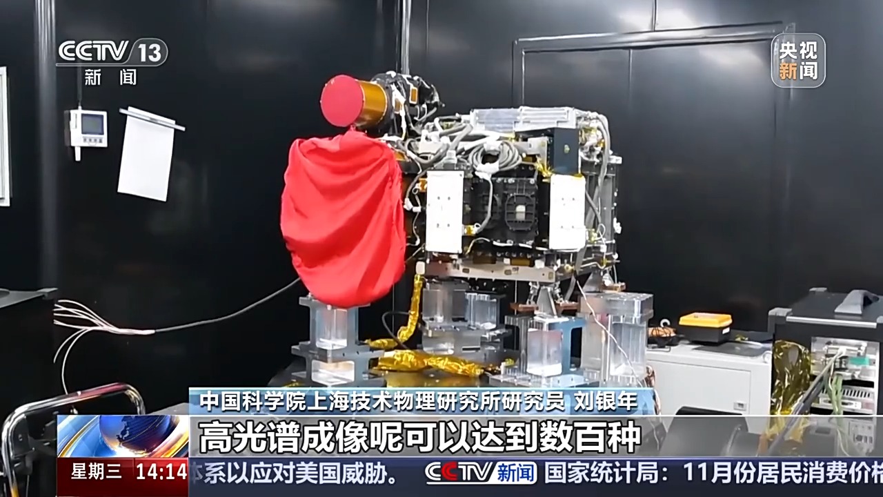 中国科学院上海技术物理研究所研究员 刘银年:高光谱相机最大的过人之处就是在别的相机观测的像素上,让相机看到的地球表面物质的颜色数更多。高光谱成像可以达到数百种甚至上千种的颜色,让不同的颜色组合,代表了物质不同的原子分子结构。